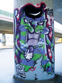 Ludwigsfelde liegt direkt an der Autobahn des Berliner Ringes. Toll für alle die, die schnell in die Ferne wollen. Auch als Logistik-Zentrum zwischen Berlin, Potsdam und dem neuen Flughafen BBI für den Güterverkehr ist das ein Standortvorteil, weshalb sich internationale Konzerne hier in Ludwigsfelde ansiedelten. Nur überspannt und zerschneidet die A 10 mit einem mächtigen Brückenbauwerk die Ludwigsfelder City mit der belebten Einkaufsmeile, der Potsdamer Straße in zwei Teile. Unschöne, graue Betonfahrbahnen auf vierzig runden Brückenpfeilern, jeder so an die drei Meter hoch und mit viereinhalb Meter Umfang. Es ist nicht mehr ganz klar, wer zuerst die Idee hatte, diese Landschaft den Graffiti-Künstlern zu öffnen. Heute kommen Touristen aus nah und fern, um die Kunstwerke zu bestaunen und zu fotografieren, eine Attraktion in der Stadt, die gerade dabei ist, das Stadtzentrum noch attraktiver für die Ludwigsfelder und ihre Besucher zu machen. Der Bürgermeister hat ein Herz für die meist jungen Künstler aus seiner Stadt und Großbeeren, die diese Graffiti-Allee vielfarbig gestaltet haben und spendierte die Farbe. Selbst die Ministerialen aus Potsdam finden Gefallen an dieser Galerie und unterstützen ebenfalls das Projekt.