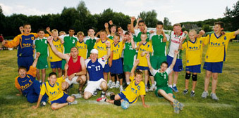 Zwei wichtige Termine gibt es beim Handballclub Hennickendorf in jedem Jahr. Da ist auf der einen Seite das große Sommerfest, das fast immer auch Gäste aus der Partnergemeinde Pierrefitte nach Rüdersdorf lockt. Auf der anderen Seite hat sich der Verein mit seinen knapp 155 Mitgliedern auch das "Spiel der Herzen" auf seine Fahne gemalt. Damit sind die Hennickendorfer ein Art Vorreiter der Region geworden. Mit einem großen Handballfest, das Eltern und die Vereinsmitglieder organisieren, steht immer ein guter Zweck im Mittelpunkt. Und so erklärte Vereinsvorsitzender Volker Hoppe: "Im ersten Jahr hatten wir uns an der Spendenaktion für den unvergessenen Benjamin Bienert beteiligt. Das war eine tolle Sache, die wir ein Jahr später mit dem Turnier für die Straßenkinder Berlins wiederholen konnten. Vor einem Jahr ging es um die Hilfe für krebskranke Kinder. Das Geld wurde an die Charité in Berlin übergeben. In diesem Jahr werden wir für die Aktion Knochenmarkspende Brandenburg-Berlin (AKBB) spielen." Hoppe bemerkte allerdings auch, dass er am Turniertag mehr Resonanz von den so genannten wichtigen Persönlichkeiten erwartet hatte. Und auch die Resonanz der Eltern war dann nicht ganz so wie erwartet. Da waren die Aktivitäten wie die die von Silvana Dreblow, die zum Beispiel Kuchen gebacken hatte oder Yvette Siegert, die fast den ganzen Tag am Verkaufsstand half, besonders wertvoll. Die Kinder des Vereins und die Gäste aus Berlin-Köpenick hatten auf jeden Fall ihren Spaß, wurden dann aber auch ganz nachdenklich, wenn es um das eigentliche Motto des Tages ging. In diesem Jahr soll das Geld, immerhin kamen 210 Euro zusammen, an die Aktion Knochenmarkspende Brandenburg-Berlin (AKBB) gehen. "Das Geld wird zu einem späteren Zeitpunkt in Absprache mit Gisela Otto direkt an die AKBB übergeben. Natürlich beschäftigen wir uns mit dem Thema, obwohl ich mir wünsche, dass eine so ernste Sache auch mal im Schulunterricht ausführlicher besprochen wird", erklärte Luise Schäpe, Schülerin und aktive Spielerin beim HCH. "Das Thema wird immer nur zeitweise brisant, wie zum Beispiel bei der jüngsten Hilfsaktion für den Schüler Björn. Wir wissen das Geld notwendig ist denn die notwendigen Blutuntersuchungen sind sehr teuer." Jede Typisierung kostet zirka 50 Euro. Seit der Gründung der AKBB konnte sie mehr als 29.000 potentielle Spender in der Region Berlin/Brandenburg gewinnen, für 65 Erkrankte war der Richtige dabei. Sie begleitet die Spender zur Stammzellenentnahme, organisiert Blutspende-Aktionen, gewinnt Ärzte und Krankenschwestern zur unentgeltlichen Blutabnahme und sammelt Geld zur Typisierung im Labor. Wer Spender oder Fördermitglied werden möchte, kann sich unter Tel. 0331/742808 melden.